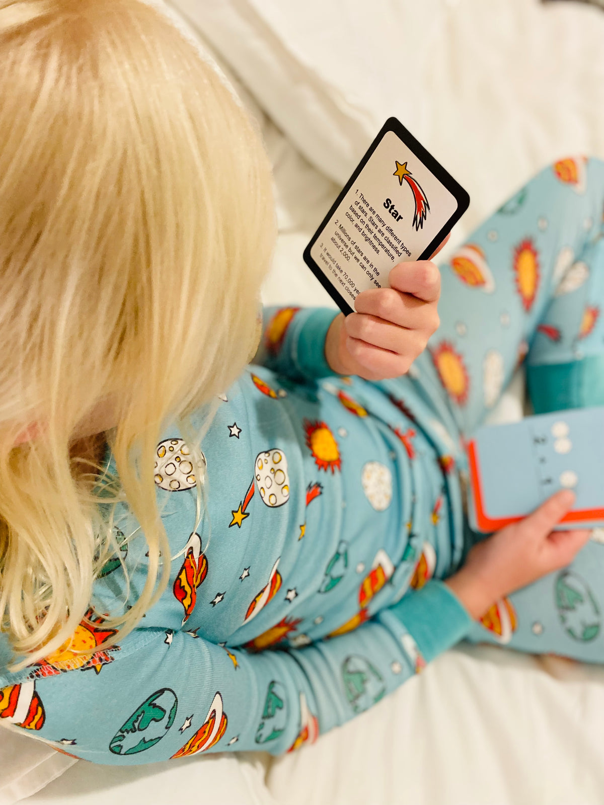 Our pajamas feature educational prints specifically designed for your child's age. Each pair of pajamas arrives with a set of exclusive Smart Dreams® cards! These are fun flash cards that will make your little one excited to learn!